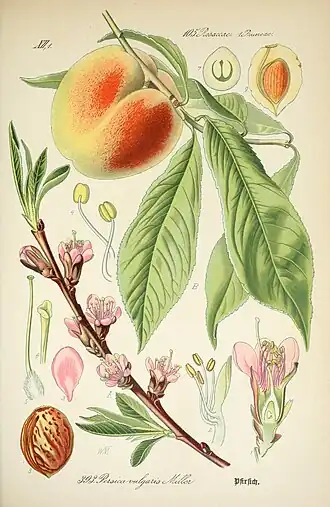Pfirsich (Prunus persica), Illustration | ||||||||||||
