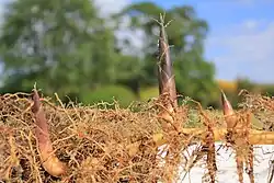 - Rhizome (Wurzelausläufer als Teile des Wurzelstocks) wie bei Rhabarber, Maiglöckchen oder Fechser beim Hopfen