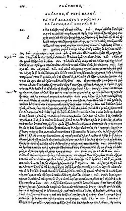 - ↑ Oxford, Bodleian Library, Clarke 39 (= „Codex B“ der Platon-Textüberlieferung).