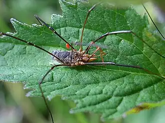 Beide Geschlechter sind ausgesprochen langbeinig, das zweite Laufbeinpaar ist das längste. Schenkel und Schienen sind kantig, die Kanten des Schenkels tragen Dornen. Die Beine sind größtenteils dunkelbraun, bei den Weibchen durchschnittlich etwas grauer. Die Körpergrundfarbe ist variabel, auch hier sind die Weibchen etwas grauer. Die Körperunterseite ist hellbeige bis kalkweiß und ohne Zeichnung.