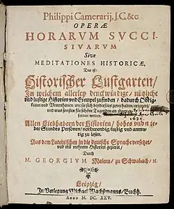 - ↑ Camerarius (Kammermeister), Philipp. In: Jesús Martínez de Bujanda, Marcella Richter: Index des livres interdits: Index librorum prohibitorum 1600–1966. Médiaspaul, Montréal 2002, ISBN 2-89420-522-8, S. 184 (französisch, Digitalisat).