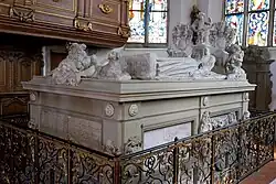 Er wurde gemeinsam mit seiner Frau in der Gruft der Langenburger Stadtkirche bestattet. Hinter dem Altar steht noch heute ein steinernes Grabmal zum Gedenken des Paares.