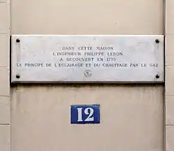 In den Städten war es vor 1800 in der Nacht recht finster. Im Haus leuchteten höchstens Kerzen, Fackeln und Öllampen. Bereits im 18. Jahrhundert konnte aus Steinkohle Leuchtgas gewonnen werden. Der französische Ingenieur Philipp Lebon stellte im Jahre 1786 die Eigenschaften des Gases der Destillation des Holzes vor[4] und erhielt am 21. September 1799 ein Patent für eine mit Gas betriebene, von ihm sogenannte „Thermolampe“, die vermutlich zur Beleuchtung ebenso wie zur Raumheizung diente. Als erste größere Anwendung installierte er in einem Pariser Hotel einen zentralen Holzofen zur Destillation von Wasserstoff, der über ein Röhrensystem in einzelne Zimmer geleitet wurde, um es dort mittels Absperrventil kontrolliert zu verbrennen.[3]
