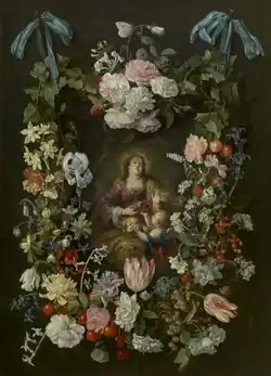Besonders zu erwähnen ist eine ebenfalls signierte und 1640 datierte Girlande mit der Heiligen Dorothea von Caesarea im Königlichen Museum der Schönen Künste, Antwerpen, deren Blumen ziemlich asymmetrisch angeordnet, mit Kirschen und Johannisbeeren verflochten und malerisch von sehr feiner Qualität sind.[8]