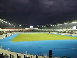 Das Philippine Sports Stadium, auch bekannt als New Era University Stadium, ist ein Fußball- und Leichtathletikstadion in Ciudad de Victoria, einer 140 ha großen Touristenzone in Bocaue und Santa Maria in der Provinz Bulacan, Philippinen.[1] Das Stadion hat eine Kapazität von 25.000 Plätzen und ist damit vor dem Rizal Memorial Stadium – dem Nationalstadion des Landes – das größte Stadion auf den Philippinen.[2] Neben dem Stadion befindet sich noch die Philippine Arena, eine der weltweit größten Indoor-Arenen.[3]