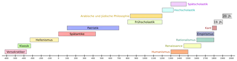 In diesem Artikel geht es um die westliche (auch: abendländische) Philosophie, die im 6. Jahrhundert v. Chr. im antiken Griechenland entstand. Nicht behandelt werden hier die mit der abendländischen Philosophie in einem mannigfaltigen Zusammenhang stehenden Traditionen der jüdischen und der islamischen Philosophie sowie die ursprünglich von ihr unabhängigen Traditionen der afrikanischen und der östlichen Philosophie.