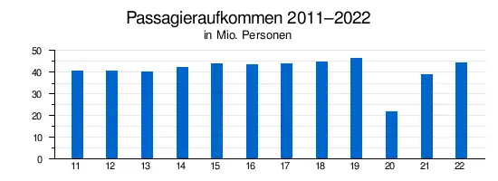 | Jahr | Fluggastaufkommen | Luftfracht (Tonnen) | Luftpost (Tonnen) | Flugbewegungen (mit Militär) | ||