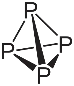 Der P-P-Abstand in den tetraedrischen P4-Molekülen beträgt rg = 2.1994(3) Å, der P-P-P-Winkel 60°.[59] Die Struktur wurde mit Gas-Elektronenbeugung bestimmt.