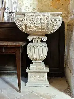 Das 1572 entstandene Renaissanceweihwasserbecken der Kirche Ste-Félicité im französischen Montagny-Sainte-Félicité zeigt ein Relief der Szene.