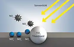Das Verfahren beruht auf der Photokatalyse, bei der Titandioxid (TiO2) als Katalysator dient. Unter Einstrahlung von (meistens) UV-Licht werden an der Oberfläche des Titandioxids Radikale gebildet, die organische Substanzen zersetzen und gasförmige Stoffe oxidieren können (vgl. Photokatalytische Selbstreinigung). Im Falle der Oxidation von Stickoxiden erfolgt eine Umwandlung von NO und NO2 in Nitrat (NO3−). Dieses ist gut in Wasser löslich und wird mit dem Regenwasser von der Oberfläche abgeführt. Der Katalysator wird bei der Reaktion nicht selbst verbraucht und bleibt somit im Baustoff für die Zeit seines Bestehens enthalten.