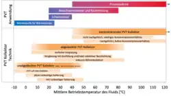 Die Anwendungsbereiche von PVT-Kollektoren und allgemein von solarthermischen Kollektoren lassen sich entsprechend des Temperaturniveaus einteilen: