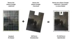 Photovoltaik-Module wandeln je nach Technologie üblicherweise rund 20 % (Stand 2023) der eingestrahlten Sonnenenergie in elektrische Energie um, Anfang der 2000er Jahre waren es ca. 10–20 %. Die restliche Solarstrahlung wird teilweise reflektiert und geht zum Großteil in Form von Wärme verloren. PVT-Kollektoren nutzen diese Wärmeenergie, um einen Wärmeträger zu erwärmen. Über das Jahr hinweg können PVT-Kollektoren, je nach Bauform, je nach Angabe die ca. 3-fache Gesamtenergie, also Wärme und elektrische Energie zusammengenommen, gewinnen als ein Photovoltaik-Modul auf der gleichen Fläche; in älteren Angaben bei noch schlechterer PV-Technik wird auch 4-fach mehr genannt. Zu diesem Zweck wird an der Rückseite des Photovoltaik-Moduls ein Rohrregister angebracht, das von einem Wärmeträger durchflossen wird. Somit kann die Abwärme der Photovoltaik-Module, bei entsprechender Bauart auch die Umgebungswärme, genutzt und einer Wärmesenke zur Verfügung gestellt werden.