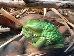 Der Warzige Makifrosch (Phyllomedusa sauvagii), zuweilen auch Wachsartiger Affenblattfrosch, Wachsgreiffrosch oder Warziger Lemurenfrosch genannt, ist eine zur Unterfamilie der Greiffrösche (Phyllomedusinae) zählende Laubfroschart (Hylidae). Auch im englischen Sprachgebrauch gibt es viele Namen für die Art: Waxy Monkey Tree Frog, Waxy Monkey Leaf Frog, Painted-bellied Tree Frog, Painted-belly Monkey Frog, Painted-belly Leaf Frog.[1] Der Artname ehrt den französischen Herpetologen Henri Émile Sauvage.