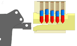 Die Picking-Pistole besteht im Prinzip aus einem Metalldorn, der sich vorn an der Picking-Pistole abnehmbar montiert befindet und in verschiedenen Stiftstärken und Formen vorliegt. Dieser Metalldorn wird in das Schloss bis zum Anschlag eingeschoben, in einer Position, in der sich der Metalldorn je nach Einbaulage des Zylinders knapp über oder unter den Kernstiften befindet, wie in nebenstehender Grafik dargestellt. Die Kernstifte sind zur Unterscheidung in rot eingezeichnet, darüber in Blau die Gehäusestifte. Über den Gehäusestiften befinden sich, in braun dargestellt, die Gehäusefedern, welche die Stifte ohne eingeführten Schlüssel in gesperrter Position halten.