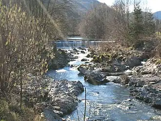- Weißenbach, von links unter der Ruine Weißenburg