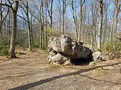 Der Dolmen besteht aus einem riesigen Deckstein aus kieselartigem Puddingstein, der auf vier Stützen ruht. Der Deckstein misst etwa 4,0 × 2,5 Meter und ist gut über einem Meter dick. Die Tragsteine ragen 0,3 bis 0,5 m aus dem Boden.
