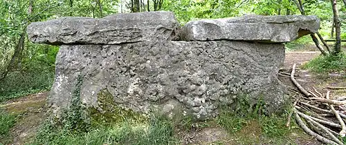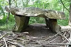 - ↑ Der Dolmen angevin ist eine Allée couverte vom Typ Loire mit (eingezogenem) Trilithenportal als Zugang.