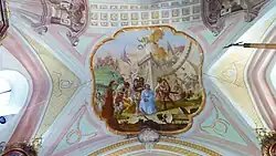 Im Barock wurde die Dorfkirche erneuert. Dabei entstanden die bis heute erhaltenen Deckenfresken und Hochaltäre. Die Fenster mit den gotischen Spitzbögen blieben aber erhalten.
