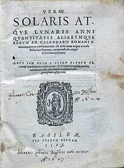 - Pietro Pitati: Verae solaris atque lunaris anni quantitatis aliarumque rerum ad calendarii romani emendationem pertinentium. Hrsg.: Per Petrum Pernam. Basilea 1568 (Latein, digitale-sammlungen.de – 3-te Auflage des Compendiums).