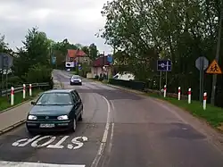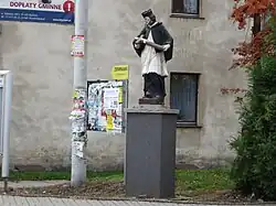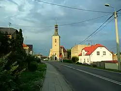 - Die römisch-katholische Pfarrkirche St. Vitus, Modestus und Creszentia (Kościół św. Wita, Modesta i Krescencji) und die sie umgebende Kirchhofsmauer stammen aus dem 16. Jahrhundert, wobei der barocke Frontturm erst 1822 errichtet wurde. 1935 folgten grundlegende Veränderungen, als der Chor zugunsten eines neuen, kurzen Querschiffs abgebrochen und in alter Form an das verlängerte, früher dreijochige Kirchenschiff wieder angebaut wurde.[1][6] Östlich der Kirche steht eine barocke Statue des böhmischen Landesheiligen Johannes von Nepomuk aus dem 18. Jahrhundert.