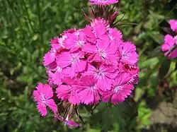 Pink ist das englische Wort für die Nelke und für die Farbe Rosa.[1] Das Wort wird auch im deutschen Sprachraum seit etwa 1980[2] benutzt.[3] Während das englische Pink dem deutschen Rosa entspricht, bedeutet das deutsche Pink ein kräftiges, sattes, meist blaustichiges Rosa oder Purpurrosa. Diese Farbe kommt auch in der Natur gelegentlich vor, u. a. bei Nelken, Rosen und Rhododendren.
