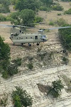 Bei dem Pinnacle-Manöver landet der Hubschrauber in einem steilen Gelände fast waagerecht und setzt nur mit dem Heck[5] oder dem Bug[3][6] auf. Dieses Flugmanöver wird bei der Bergrettung oder Materialtransportflügen in unwegsamen Gelände verwendet.[4]