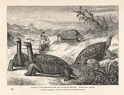 Die Herkunft und systematische Einordnung sind bis heute nicht abschließend geklärt und faszinierten bereits Charles Darwin. Ergebnisse von DNA-Analysen deuten darauf hin, dass die drei nächsten lebenden Verwandten der Galápagos-Riesenschildkröten aus Südamerika stammen: Es handelt sich um die Waldschildkröte (Geochelone denticulata), die Köhlerschildkröte (Geochelone carbonaria) und die Chaco-Schildkröte (Geochelone chilensis).[8][9]