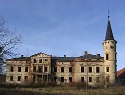 - Das Schloss Petersdorf wurde 1866 von Baron von Zedlitz im Stil des Klassizismus an Stelle eines Vorgängerbaus errichtet. In den 1890er Jahren wurde es von der Familie von Richthofen um einen quadratischen Nordflügel mit einem runden Turm erweitert. Nach der Übergang an Polen 1945 wurde es verstaatlicht. Seit 1990 ist es privater Hand, heute dringend sanierungsbedürftig.