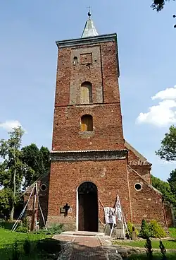 Bei der heutigen Johannes dem Täufer gewidmeten Kirche handelt es sich um einen Backsteinbau. Von alter Ausstattung sind noch Teile des Hauptaltars um 1700 sowie Teile der Seitenaltäre aus dem zweiten Hälfte des 19. Jahrhunderts erhalten. In der Kirche befindet sich ein Taufbecken aus Granit aus dem 15. Jahrhundert.