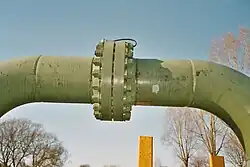 Flansch-Verbindung einer Pipeline, geschraubt, mit elektrischem Kontaktbügel (oben)