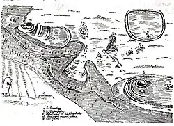 Östlich der Burg liegt etwa einen Kilometer entfernt ebenfalls nördlich der Sieverner Aue die bedeutend ältere Heidenschanze sowie die Heidenstadt.
