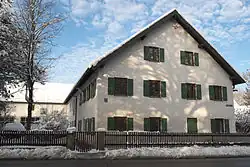 Das ehemalige Bauernhaus stammt im Kern aus dem 19. Jahrhundert. An das zweigeschossige Haus mit Dachausbau schließt sich der ehemalige Stall und die Scheune an.