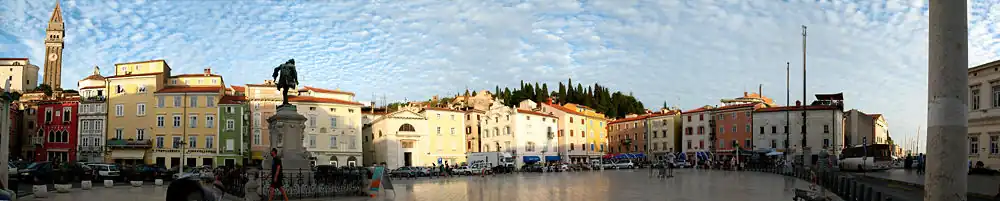 Die Stadt Piran, italienisch: Pirano ist der Hauptort der aus elf Ortschaften bestehenden Gemeinde Piran in Slowenien. Piran liegt im äußersten Südwesten des Landes auf einer Halbinsel am Adriatischen Meer.[2] Mit ihrer Lage, ihrer Altstadt und venezianischen Architektur ist die Stadt an der Slowenischen Riviera eines der bekanntesten Touristenzentren des Landes.