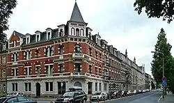 Ende des 19. Jahrhunderts wuchs die Stadt in Richtung Süden. Im Bereich der heutigen Südvorstadt entstand ab 1887/1889 ein ausgedehntes Kasernenareal entlang der Rottwerndorfer Straße. Die „Graue Kaserne“ diente als Unterkunft für das 2. Feldartillerie-Regiment Nr. 28[20] (später ersetzt durch das 1. Pionierbataillon Nr. 12). Zwischen 1901 und 1906 wurde das Kasernenareal nach Süden um die Bauten der „Roten Kaserne“ für das 5. Feldartillerie-Regiment Nr. 64 erweitert. Die Kasernen boten Unterkünfte für etwa 1700 Mann. Als Exerzierplätze nutzte das Militär ein Gelände an der Stadtgrenze nach Heidenau und eines an der heutigen Copitzer Brückenauffahrt der Sachsenbrücke beim Flugplatz.