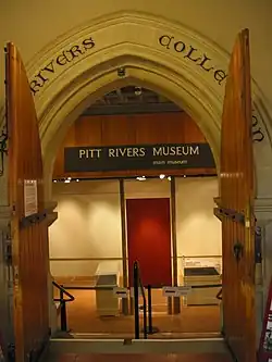 Diese geht zurück auf eine großzügige Schenkung von mehr als 18.000 Objekten durch den englischen General Pitt Rivers. Dessen Interesse an ethnografischen Objekten wurde wahrscheinlich auf der Great Exhibition in London im Jahr 1851 geweckt. Er hatte besonderes Interesse an der wissenschaftlichen Untersuchung evolutionärer Entwicklungen antiker Kulturen. Diese sollte an Entwicklungsreihen von Objekten nachvollzogen werden.[1] Der erste Kurator war der britische Archäologe Henry Balfour (1863–1939).