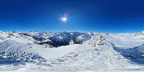 - ↑ Berechnetes 360°-Panorama (U. Deuschle; Hinweise) vom Piz Lunghin
