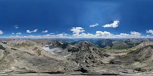 - ↑ Berechnetes 360°-Panorama (U. Deuschle; Hinweise) vom Piz Sesvenna