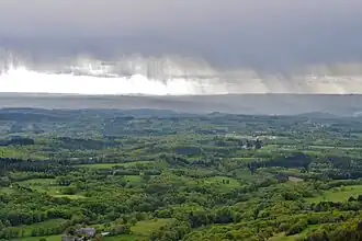 Blick über das Plateau du Limousin nach Südost in Richtung der Monts du Fayat | |