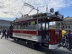 - ↑ Der älteste Museums-Straßenbahnwagen in Dresden wurde 100 Jahre. In: dvbag.de. Strassenbahnmuseum Dresden e. V., archiviert vom am 2. Juni 2014; abgerufen am 1. Juni 2014.