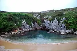 Der Playa de Gulpiyuri ist eine überschwemmte Doline[1] mit einem Binnenstrand in der Nähe von Llanes in Asturien, Spanien etwa 100 m von der Kantabrischen See entfernt.[2] Etwa 40 Meter in der Länge, ist er voll den Gezeiten aufgrund einer Reihe von unterirdischen Tunneln ausgesetzt. Landläufig als kleinster Badestrand Asturiens bekannt, ist er ein beliebtes Touristenziel und Naturdenkmal.