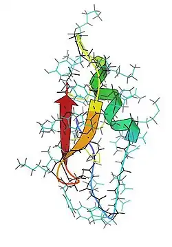 - ↑ a b c T. Schneider et al.: Plectasin, a Fungal Defensin, Targets the Bacterial Cell Wall, Precursor Lipid II. In: Science. 28. Mai 2010, Band 328, Nr. 5982, S. 1168–1172, doi:10.1126/science.1185723.