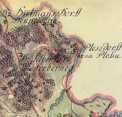 Auch Carl Schmutz führt 1822 den Ort in seinem „Lexikon von Steiermark“ an: „Pleßdorf, windisch Plesje, Cillier-Kreis, Gemeinde des Bezirkes und der Grundherrschaft Wisell, Pfarre St. Peter bey Königsberg. Flächenmaß zusammen mit Silberberg, 324 Joch und 1304 Quadratklafter, worunter Aecker 81 Joch und 634 Quadratklafter, Wiesen 104 Joch und 132 Quadratklafter, Gärten 1331 Quadratklafter, Huthweiden 114 Joch und 1130 Quadratklafter, Weingärten 23 Joch und 975 Quadratklafter. Häuser 16, Wohnparteien 21, einheimische Bevölkerung 123, worunter 66 weibliche Seelen. Viehstand Kühe 6“.