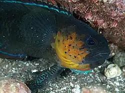 - Blaukiemen Mirakelbarsch (Plesiops corallicola Bleeker, 1853)
