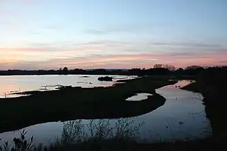 | Blick vom Beobachtungsturm aus nach Norden, rechts die Flachwasserzone | ||