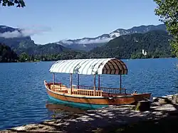 Die Bauart einer Pletna, deren Name sich von dem im Salzkammergut verbreiteten Bootstyp der Plätte ableitet,[2] hat sich im Laufe der Zeit verändert. Die heutige Form wurde um 1900 nach dem Vorbild von Booten entworfen, die bereits auf mitteleuropäischen Seen im Einsatz waren. Die Markise wurde erst nach dem Ersten Weltkrieg eingeführt. Das Wissen, wie eine Pletna gebaut und gerudert wird, wird in den Familien von Generation zu Generation weitergegeben. Traditionell werden die Boote nur am See gefertigt und nur von Einheimischen gerudert, die mehrheitlich dem im Jahr 2002 gegründeten Pletna-Bootsverband Bled (Čolnarsko združenje Pletna Bled) angehören. Im Jahr 2019 waren 23 Boote auf dem Bleder See im Einsatz[4] zwischen sechs Bootsanlegestellen am Seeufer und zwei auf der Insel.[3] Typische Touristenfahrten sehen einen halbstündigen Aufenthalt auf der Insel[5] und den Besuch der dortigen Marienkirche vor.