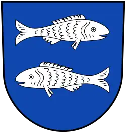 Das Wappen von Pleutersbach zeigt in Blau zwei gegengewendete silberne Fische, der obere nach links schwimmend.