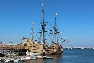 Am Plymouth Rock soll der Überlieferung nach William Bradford mit der Mayflower gelandet sein. Die damit verbundene Gründung der Kolonie Plymouth gilt gemeinsam mit der Gründung von Virginia als Ursprung der Vereinigten Staaten. In Plymouth befindet sich das National Monument to the Forefathers (früher als Pilgrim Monument bezeichnet), das zwischen 1907 und 1910 gebaut wurde.[3] Es handelt sich um die dritthöchste Statue der USA.[4]