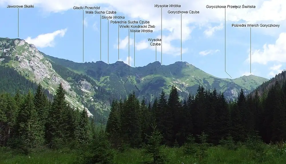 Die Pośredni Goryczkowy Wierch ist ein Berg an der polnisch-slowakischen Grenze in der Westtatra mit 1874 Metern Höhe im Massiv der Suche Wierchy.