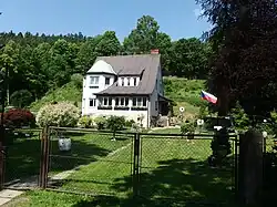 - Ehemaliges Kloster, das zweigeschossige Gebäude dient heute als Wohnhaus. An der baufälligen Fassade sind noch Konturen des Kapellenanbaus gut erkennbar. Das Zugangsgewölbe zu der unter der Straße befindlichen Quelle stürzte beim Ausbau der Straße ein.
