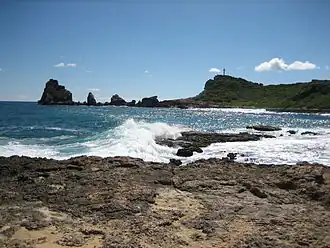 Der Pointe des Châteaux am östlichen Horizont vorgelagert liegt die Insel La Désirade.